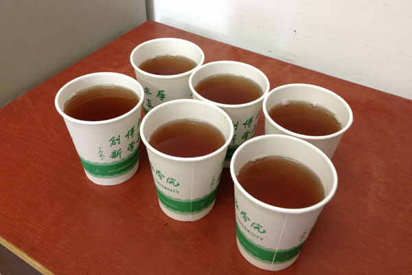 随后,继续教育学院团总支、学生会干部立即购买生姜、联系饭店帮忙煎煮、准备水杯、借用三轮车运送……各项工作有条不紊地开展起来,不多时,一杯杯热气腾腾的姜汤就被送到军训学员手中。
