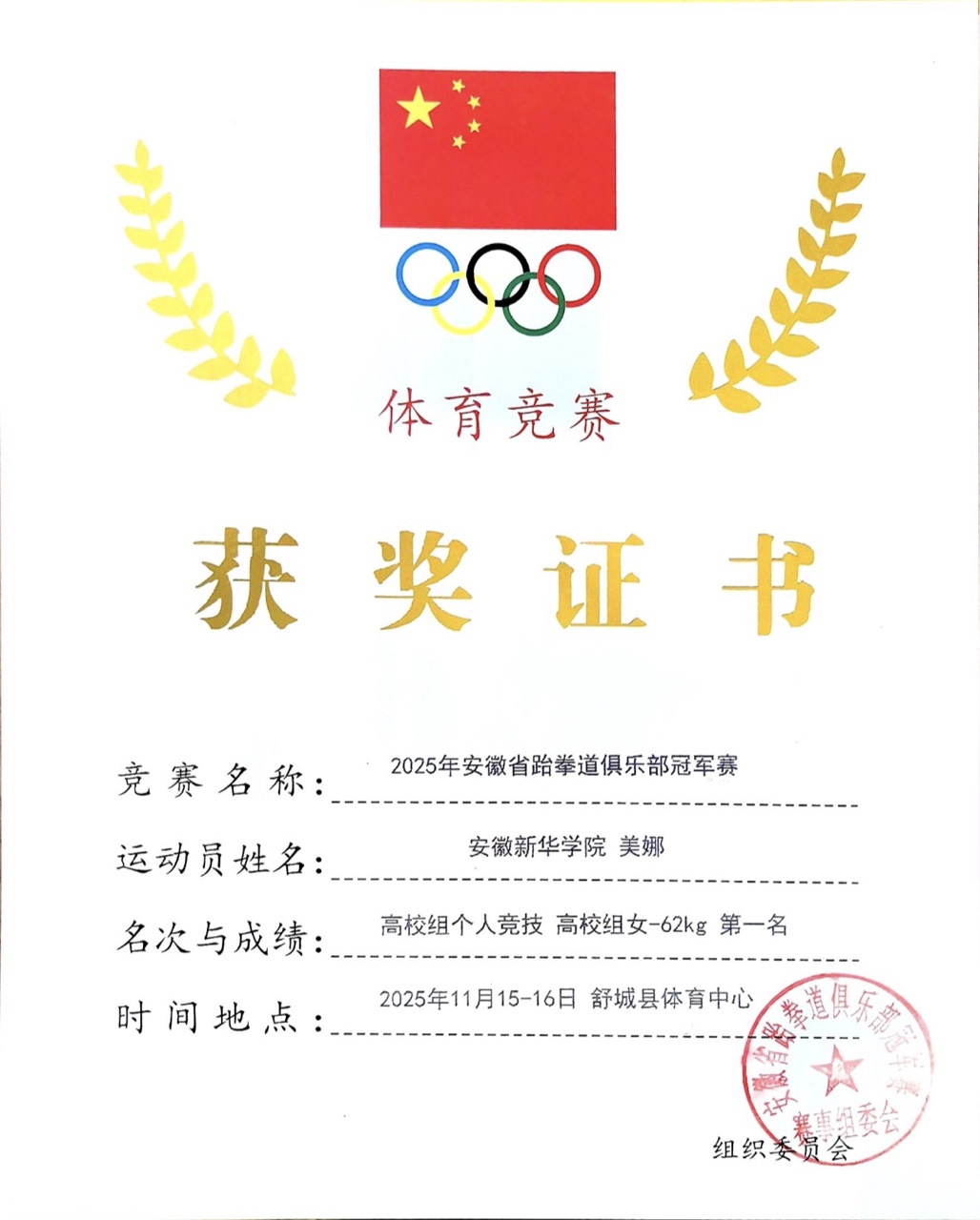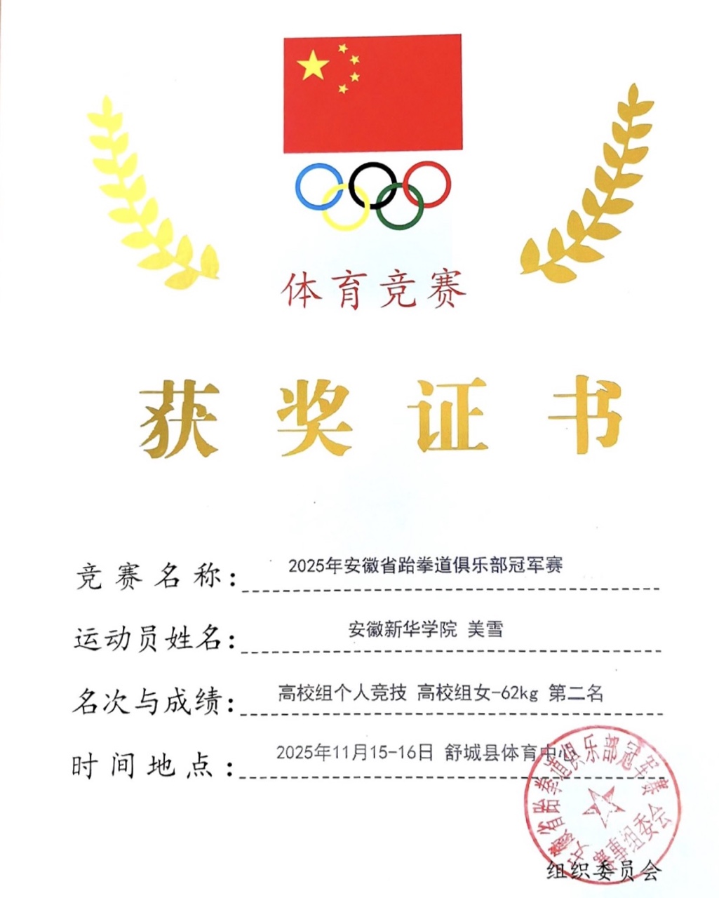 本届赛事由安徽省跆拳道运动协会主办,吸引了来自全省各高校、体育运动学校及俱乐部的众多运动员参与。高校组比赛竞争尤为激烈,运动员需为“已在中国高等教育学生信息网进行学籍注册的、安徽省普通高校全日制学生”,并严格按性别与体重级别划分竞赛单元。美娜与美雪凭借出色的技术、顽强的斗志和稳定的临场发挥,一路过关斩将,最终在高校组个人竞技项目中脱颖而出,斩获佳绩。