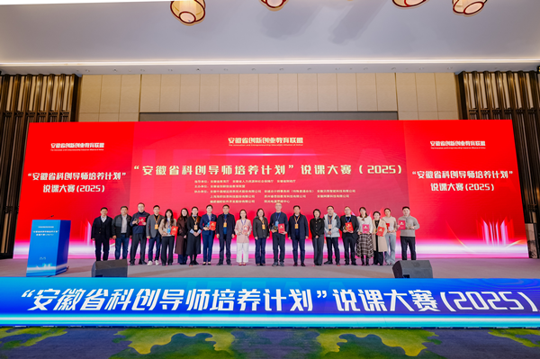 本网讯(通讯员:陈启虞 胡杨)12月20日,2025年安徽省科创导师培养计划说课大赛在合肥融创永乐半山酒店圆满结束。我校两位参赛教师凭借优异表现荣获佳绩——文化与传媒学院教师胡杨获二等奖,艺术学院副教授李薇薇获三等奖,展现了我校在创新创业教育领域扎实的师资力量与教学水平。