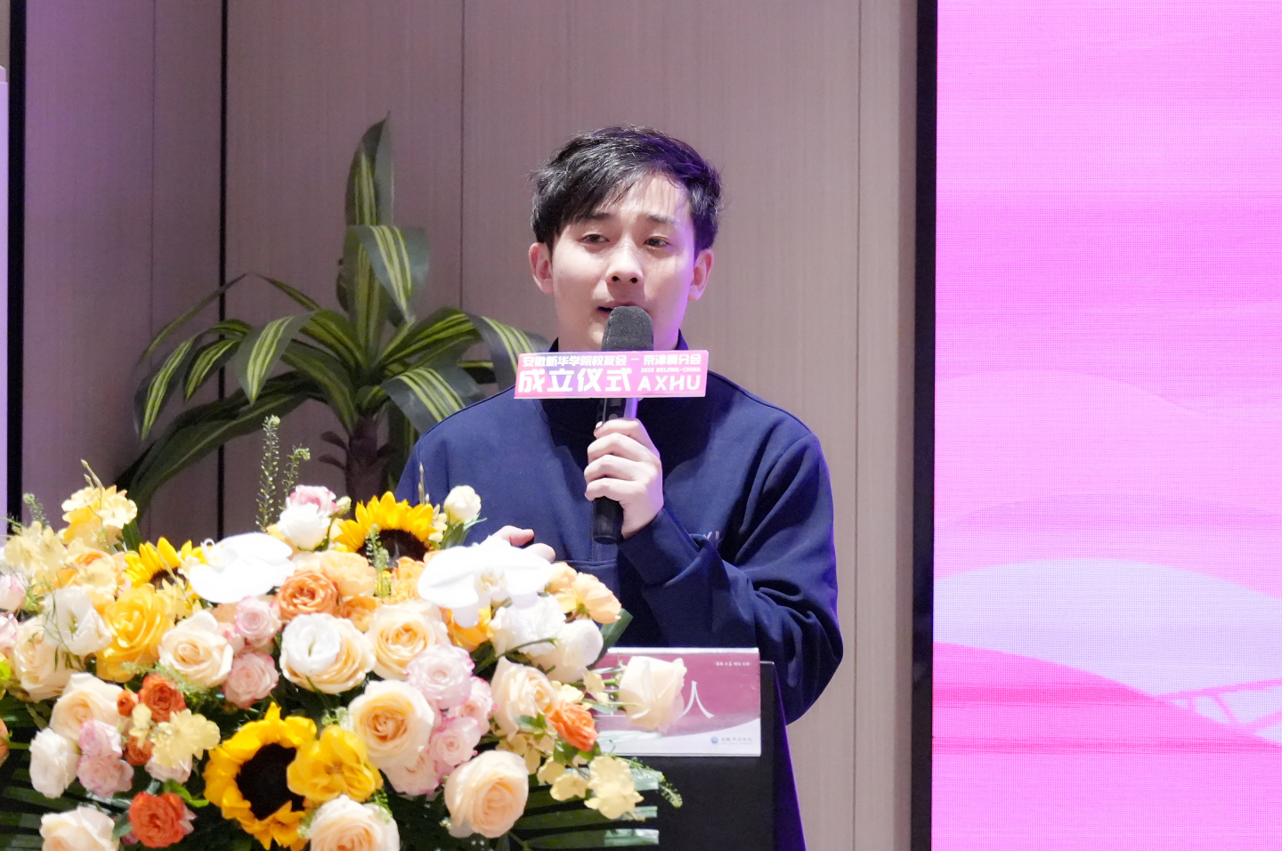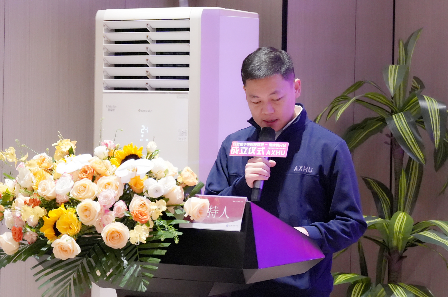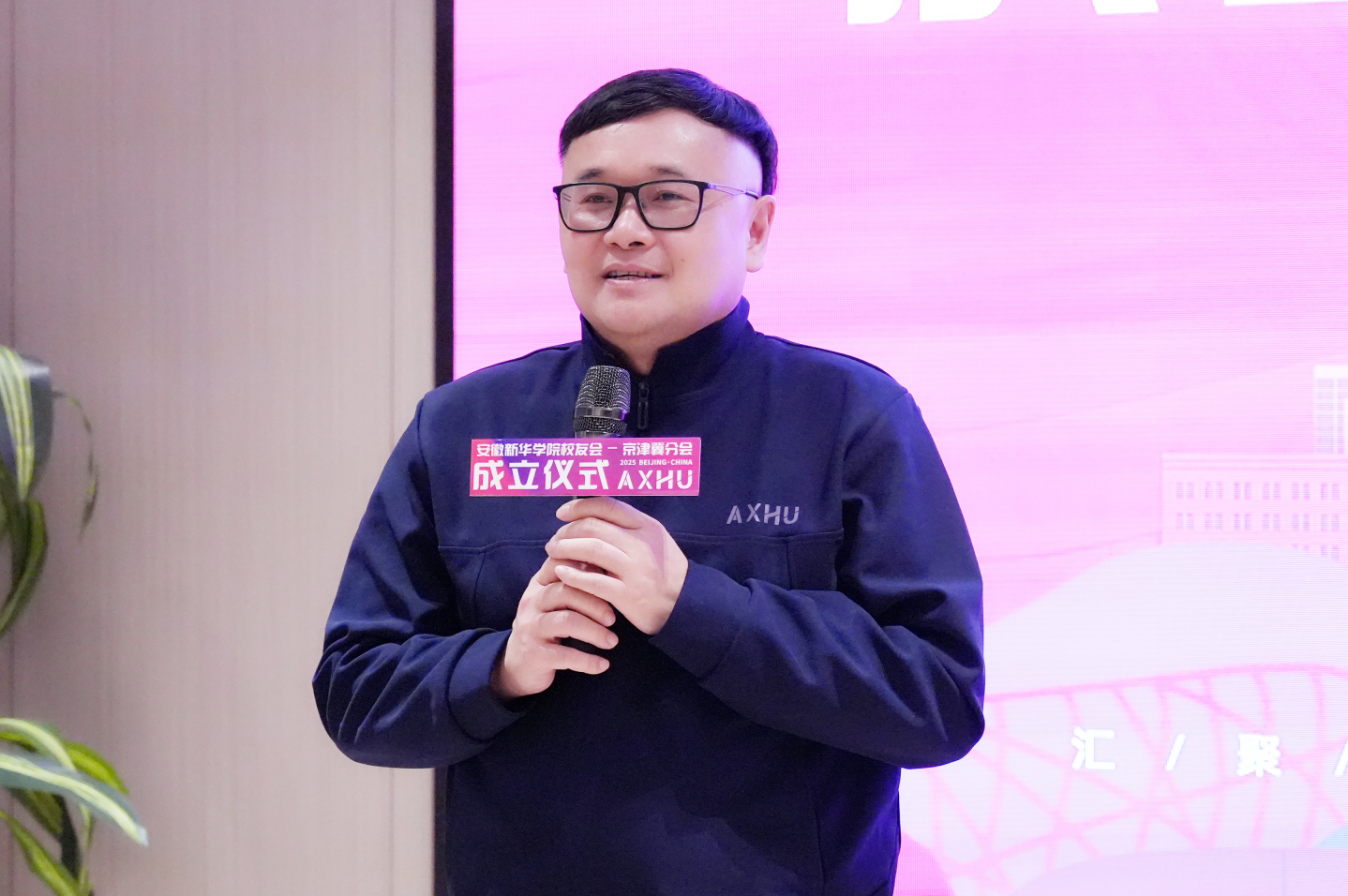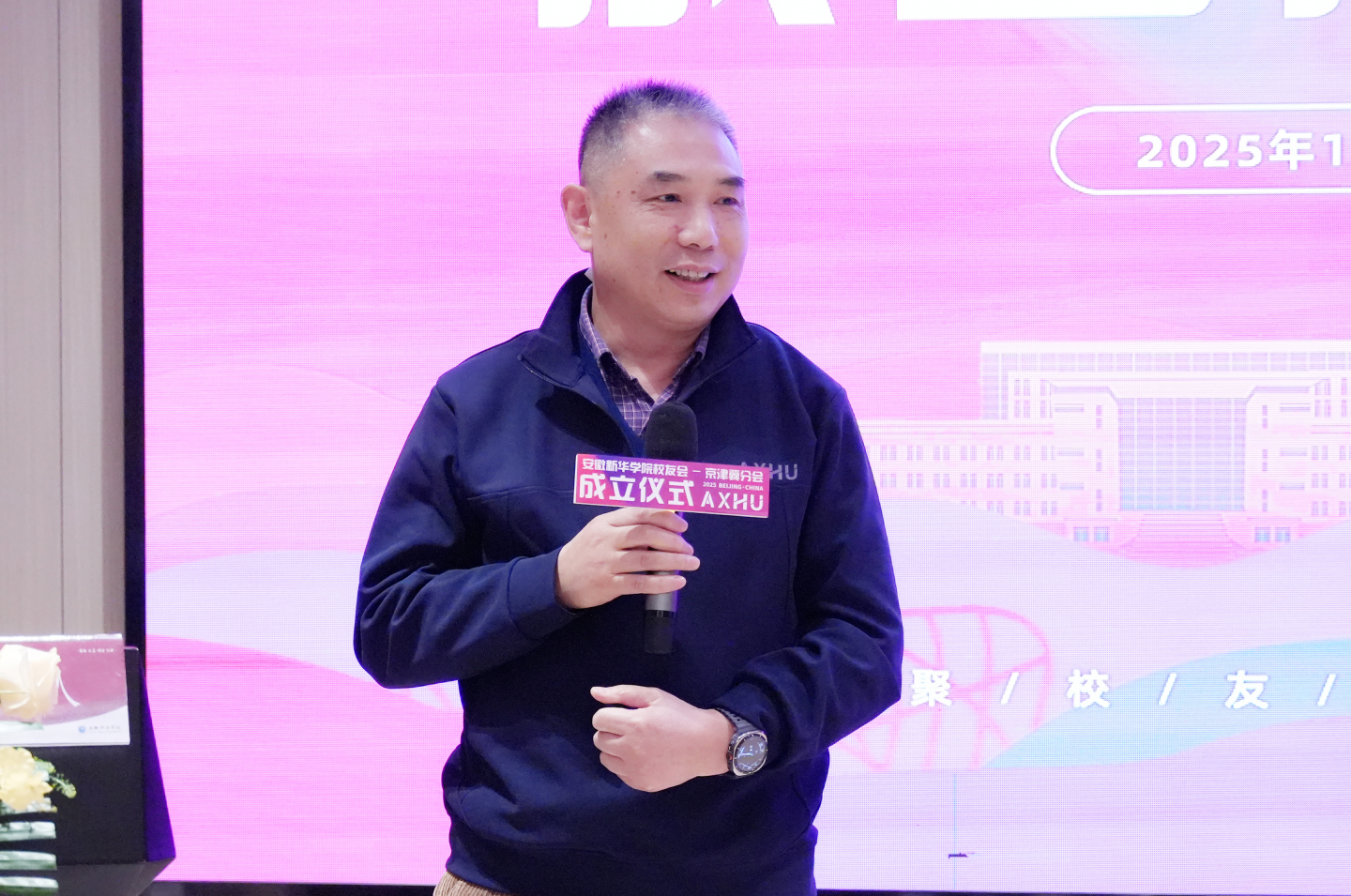 兄弟校友组织代表——合肥工业大学北京校友会副会长兼秘书长胡勇、安徽新华学院校友会合肥分会常务副会长康维胜——先后上台致贺词,传递兄弟高校校友间的深厚情谊与鼎力支持之意。大会现场情谊交融,祝福满盈。