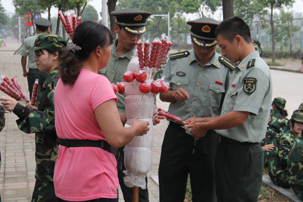 李教官看着他的学员们,笑着说:“买糖葫芦给她们吃是因为我很喜欢她们。”这份教官情比糖葫芦还甜,直接深入同学们的心里。