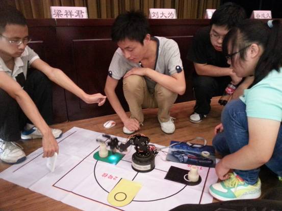 第五届机器人大赛比赛内容涉及仿真2D、仿真3D、仿人机器人舞蹈、机器人救援仿真、MSRS Nao仿真、家用机器人仿真、机器人田径赛、机械臂搬运赛以及表演赛等项目。我校信息工程学院自6月份接到参赛通知,召开专门会议落实比赛各项内容,选派史先桂、朱学玲、王华本、鹿建银和曾莉作为指导教师,安排辅导员在班级宣传比赛相关事宜并组织学生参加比赛。暑假期间,指导老师对报名参加比赛的学生进行初期选拔,最终选中15位同学组成5个团队参加此次大赛。在比赛期间,选手们克服种种困难,不畏强队,最终取得了不俗的战绩。