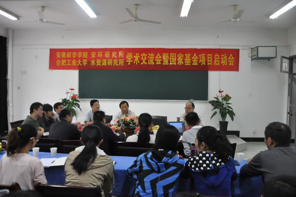 会议由科研处处长吕新生主持,方达宪致欢迎辞。金菊良与蒋亚龙分别介绍了各自研究所的基本情况,以及目前主要承担的科研项目,双方就水资源、水环境、水安全、水生态问题等研究领域、以及解决问题的方法路线等进行了交流,并提出了进一步深化合作、优势互补的意向。随后,潘争伟对今年获批的国家自然科学基金项目“城市变化环境下水资源系统脆弱性机理及其对人类活动的响应研究”的研究内容、研究思路进行了汇报,各位专家就项目前期开展情况及关键技术问题进行了讨论,提出了许多指导性意见。会议最后,杨世国院长作了总结讲话,他对两校开展科研交流活动表示赞赏,对交流内容作了进一步深化,并对项目工作的开展提出了要求。