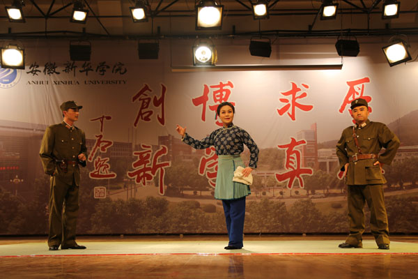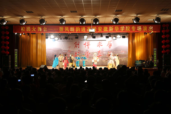 本网讯(学生记者 余小敏、张倩、虞甜隐)10月23日晚,“校园大舞台”——徽风皖韵进高校安徽新华学院专场演出在我校大礼堂隆重上演。这是我省今年“徽风皖韵”系列高雅艺术进校园的最后一场演出。
