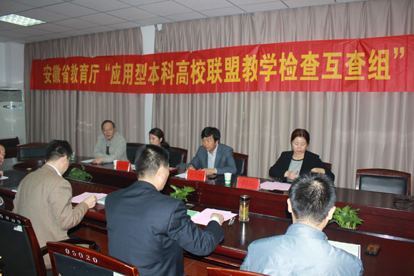 本网讯(通讯员 许苗苗)为贯彻落实《安徽省应用型本科高校联盟教学检查互查暂行规定》文件精神,加强联盟学校之间的交流、学习与研讨,进一步规范教学管理工作,我校于10月30日上午召开了“应用型本科高校联盟教学检查互查组”教学检查工作会议。巢湖学院教务处处长朱定秀、合肥学院教务处副处长杜亦智、合肥师范学院教务处副处长胡昂作为检查组专家应邀出席了会议。院长石秀和教授、副院长马凤余教授、教务处、教学质量监控办公室、评建办和各教学单位相关人员参加了会议。