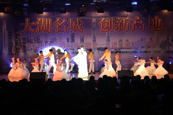 新华学院报讯(学生记者 李文焕、康引兰)10月31日晚,学校大礼堂灯火通明,由市委市政府牵头,市文广集团承办的“大湖名城 创新高地——市校共建同唱家园大型演唱会”演出在这里举行。此次晚会展现了合肥市委、市政府面对新形势、新市情,打造“大湖名城、创新高地”的战略决策和美好愿景,为城市和高校协同共建搭建了平台。