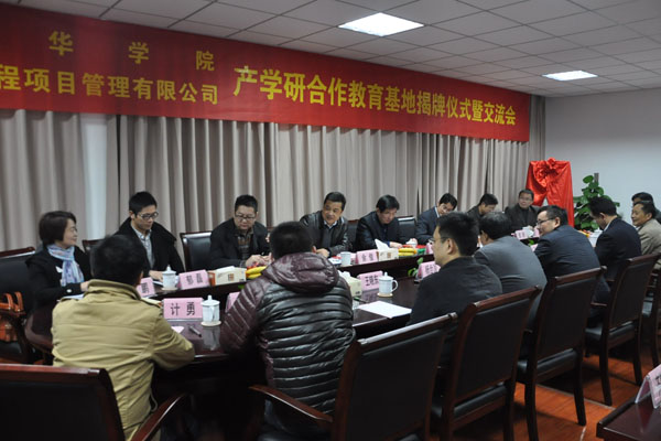 本网讯(通讯员 俞士毛)11月30日下午,我校土木与环境工程学院与安徽国华建设工程项目管理公司举行产学研合作教育基地揭牌仪式。新华集团副总裁、学校执行董事王孝武,副院长杨世国、马凤余,集团开发建设部总工程师王晓东与安徽国华公司董事长苗一平出席,土木与环境工程学院、建筑设计院相关工作人员参加了揭牌仪式。