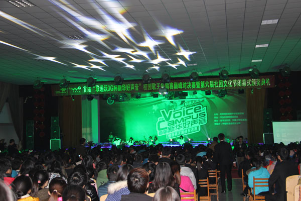 本网讯(学生记者 刘文娟,摄影 求美摄影协会)11月29晚,我校大礼堂上演 “首届新华好声音”校园歌王争霸赛巅峰对决赛暨第六届社团文化节闭幕式颁奖典礼。副院长倪征出席比赛。好声音导师继续由央视青年歌手大奖赛安徽赛区通俗组冠军、安徽电视台《当红不让》栏目评委刘小雅,安徽电视台节目主持人大海,校团委洪威老师担任。