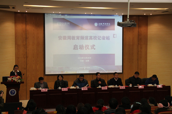本网讯(学生记者 余小敏、王友雅)为给广大网友提供最新鲜、最本土、最快捷的安徽原创教育新闻资讯,安徽网教育频道在全省范围内招募校园记者。经过几个月的选拔,共有35名大学生成为安徽网教育频道高校记者站的学生记者,其中有我校大学生记者团9名学生记者。12月28日上午,安徽网教育频道高校记者站启动仪式在我校学术报告厅举行。