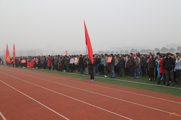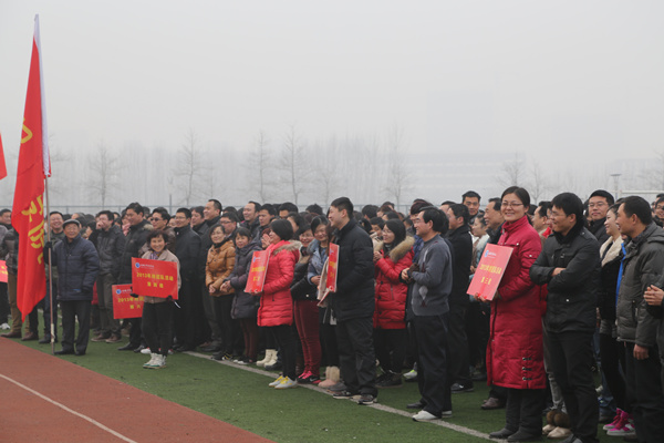 本网讯(记者 吴小婉)为提高教职工身体素质,营造全民健身的良好氛围, 1月13日上午,我校教职工阳光体育环校园长跑活动在祥云体育场举行,校领导胡昭林、杨世国、马凤余、袁种宝出席了活动,共有14支代表队1000多名教师参加了本次活动。