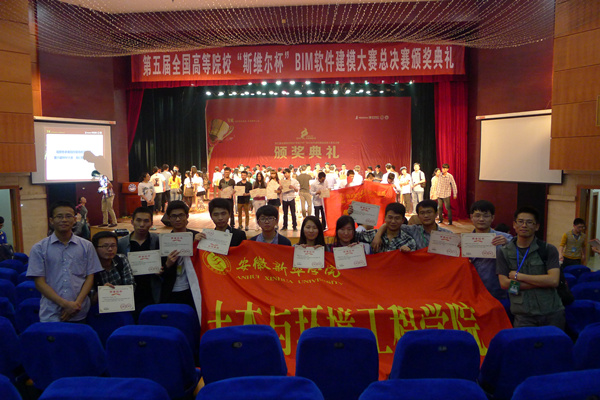本网讯(吴韬)5月17日,第五届“全国高校斯维尔杯BIM建筑信息模型大赛”总决赛在南昌大学和沈阳建筑大学同时举办,我校土木与环境工程学院“WAVE”和“无所畏”两支代表队晋级获得决赛资格。5月18日,从总决赛上传来喜讯,两支代表队从近240所高校的约270支代表队中脱颖而出,分别获得团队全能二等奖和团队全能三等奖;在专项比赛中共获得《建筑设计》、《节能设计与日照分析》、《项目管理与投标工具箱》、《建设工程VR仿真系统》、《结构设计与结构分析》5个专项二等奖及《三维算量与清单计价》、《安装算量与清单计价》、《设备设计与暖通负荷》、《项目管理与投标工具箱》6个专项三等奖,在团队全能获奖等级取得突破的同时,专项比赛获奖数量也创了历届新高。