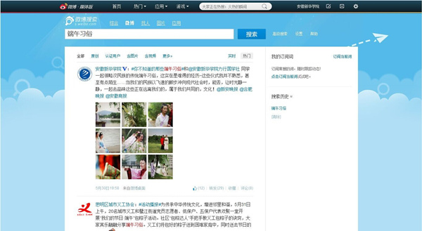 本网讯(文 姚欣,摄影 朱微波、姚欣)5月29日下午,学校力行国学社本着弘扬传统文化,培育民族精神的宗旨,在如琴湖畔举行“端午汉仪祭祀”活动。我校官方新浪微博及时捕捉新闻热点,发布活动话题,在网络上受到极大关注。