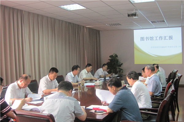 马凤余首先介绍了图书馆工作委员会的基本情况,并宣读了新一届图书馆工作委员会委员名单。图书馆副馆长汤干君就图书馆现状及2014年图书馆的主要工作向委员们进行了汇报。他从图书馆硬件建设、文献资源建设、技术支撑、信息服务、图书馆2014年主要工作等方面汇报了图书馆的建设情况。图书馆馆长费业昆就一些工作要点和思考进行了补充说明。