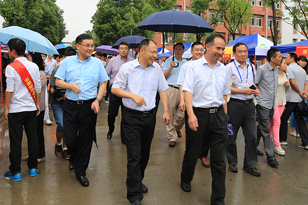 本网讯(记者 姚欣)6月26日,2014年安徽省(皖中片)高招咨询会在我校成功举行。安徽省委教育工委书记、省教育厅厅长程艺冒雨亲临现场视察指导工作,亲切慰问参展高校代表,并为考生报考作指导。安徽省教育招生考试院招生考试研究处处长胡雨生、新华集团董事长吴俊保,集团公司副总裁、我校执行董事王孝武,校领导胡昭林、石秀和、杨世国、倪征在现场陪同。