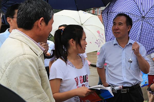 看到秩序井然的高招咨询会现场,程艺对我校的组织筹备工作与校园环境给予了赞扬。