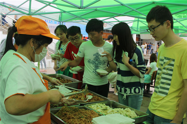 中午,在如琴湖畔的翰林广场帐篷下,许多新生和家长正在帐篷下的餐桌上用餐。这些帐篷、桌椅都是为方便新生和家长就餐而专门设定的。总务处工作人员在介绍今年的迎新工作时说,开学迎新期间各食堂全天营业,确保学生随时可以吃上热饭菜。总务处为了迎新期间保证各家食堂的饮食保障工作,提前定制应急预案,要求各家食堂各自审查,提前做好内部装修和卫生清理工作。我校的四期食堂(郁金香连锁餐厅)以全新的面貌迎接新生的到来。干净整洁,清新明亮度的大厅给人焕然一新的感觉,新颖别致的室内装修设计为广大师生营造清爽舒适的就餐环境。餐厅的后堂操作区实行了透明化的管理,井然有序,让学生和家长吃的放心,吃的安心。