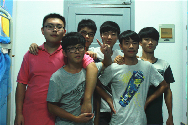 同一个宿舍有着6位来自省外的新生,他们4个来自江苏,2个来自湖南,他们是信息工程学院2014级计算机应用与科学专业的新生。来自湖南岳阳的吴爽就是宿舍的一员,19岁的吴爽是个腼腆的大男孩,非常喜欢踢足球,一进学校就已经报名参加了足球俱乐部。吴爽在学长学姐的帮助下成功报到,送走了父母后,他一个人在校园里走走看看,他说:“对学校的第一印象就是感觉学校特别的大,环境很美。”吴爽的室友周琪是湖南邵阳人,两个人还约好今后回家要一起坐火车。室友孙镭来自江苏靖江,谈文涛、侯佳华都是来自江苏无锡,而李政来自江苏宿迁。四位江苏的老乡聚在一起是一种缘分,他们用一口带着家乡方言的普通话一起聊家乡、聊学校、聊心中的大学生活……