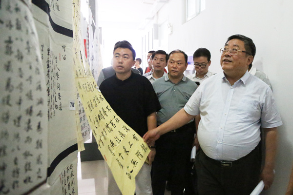 本网讯(学生记者 宁薛敏、张志彦)9月5日,全省大中小学师生书法作品征集评选活动终评会在安徽新华学院举行。省教育厅总督学李明阳,省文联副主席、书记处书记、省书法家协会副主席吴雪,新华集团副总裁、学校执行董事王孝武,学校党委书记、督导专员胡昭林等出席活动。