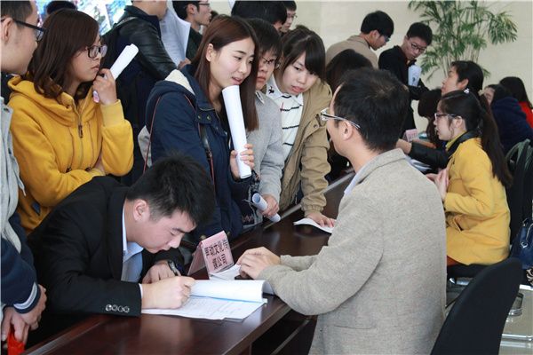 招聘会现场气氛热烈,我校毕业生纷纷挑选心仪的单位进行面试,大家手持精心准备好的自荐书和简历积极与企业招聘人员交流,用人单位对简历作了初步筛选,并对部分同学进行了简短面试。