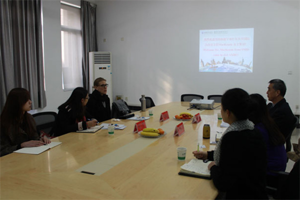 本网讯(赵倩青)11月13日上午,美国南新罕布什尔大学新任国际办公室主任MacKenzie一行来我校访问交流,国际教育学院院长范东生教授,国际交流与合作中心主任、国际教育学院执行院长程宏云等同志热情接待了来宾。