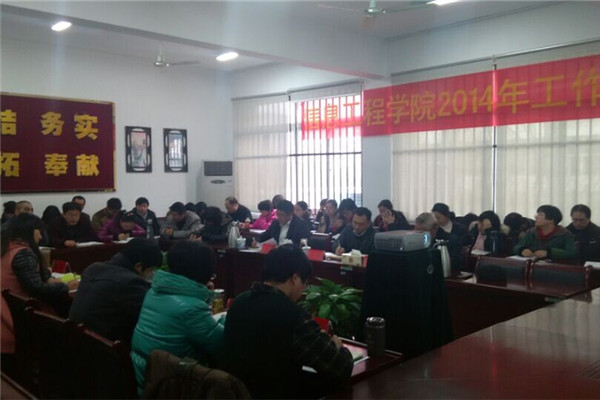 信息工程学院院长程家兴教授向大家报告了一年来信息学院各项工作的开展情况,他从党建、教学、科研、队伍建设、学生工作、服务与保障等方面进行总结,他指出2014年信息工程学院在教科研方面表现突出,其中成功获批安徽省振兴计划2项;组织教职工参加学校各项比赛,提高了教师队伍的业务水平;通过开展系列学科竞赛,加强了学院的学风建设。程家兴对2014年全体教职工的努力付出表示感谢,鼓励大家在2015年继续努力,争取更大的收获。会议期间,马琪从科学做好信息工程学院的发展规划、加强教职工团队建设、创新人才培养模式、推进教育教学改革、规范完善各项学生管理事务、激发自身办学活力、提升学院对外形象、确保全年安全稳定等八个方面对信息工程学院2015年的工作思路进行了报告。