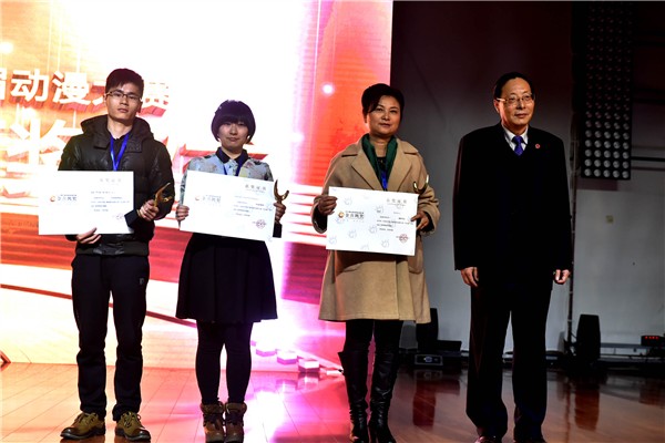本次颁奖仪式气氛活跃,形式创新,彰显了动漫文化的活泼可亲。颁奖现场,大屏依次幕播放各项获奖作品VCR视频短片,颁奖嘉宾们分别为获奖单位和个人颁奖。我校执行董事王孝武为优秀动画作品奖第二组颁奖,我校院长石秀和为优秀漫画作品奖颁奖。