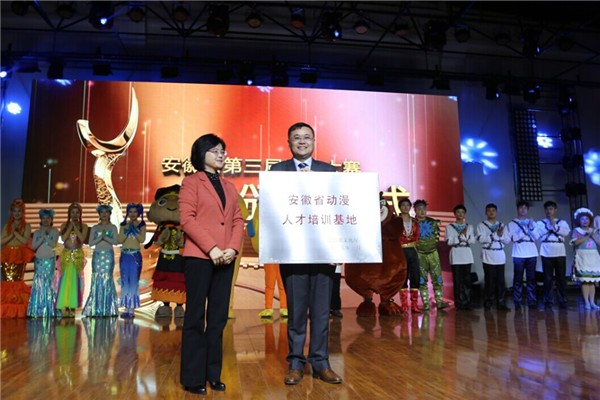 最后,省文化厅厅长袁华为安徽新华学院授“安徽省动漫人才培训基地”牌。安徽省第三届动漫大赛颁奖仪式圆满落幕。