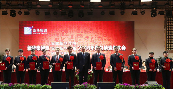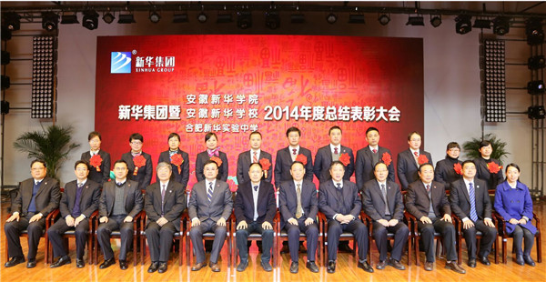 本网讯(记者:单邦燕,摄影:陆如海、姚欣) 1月31日上午,新华集团暨安徽新华学院、安徽新华学校2014年度工作总结表彰大会在我校大礼堂隆重召开。相关领导与一千余名教职员,共同回顾2014年的工作情况,总结了这一年所取得的成绩及经验教训,明确了2015年的工作要点,同时,大会表彰了荣获奖项的单位和个人。大会由新华集团副总裁、安徽新华学院执行董事王孝武主持。