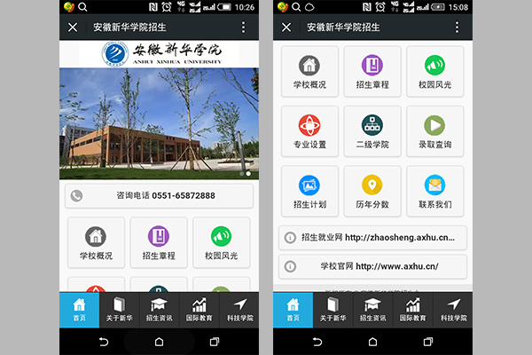 随着智能手机的普及,手机已成为现代人们生活中最主要的信息来源和社交途径。当前正值各省市高考志愿填报前夕,校宣传处与有关机构合作推出招生网站手机版,为考生和家长了解我校招生信息提供了新的平台。安徽新华学院招生网站手机版界面设计简洁美观,获取信息方便快捷,考生和家长可随时通过其了解学校基本情况、办学特色和招生相关信息。