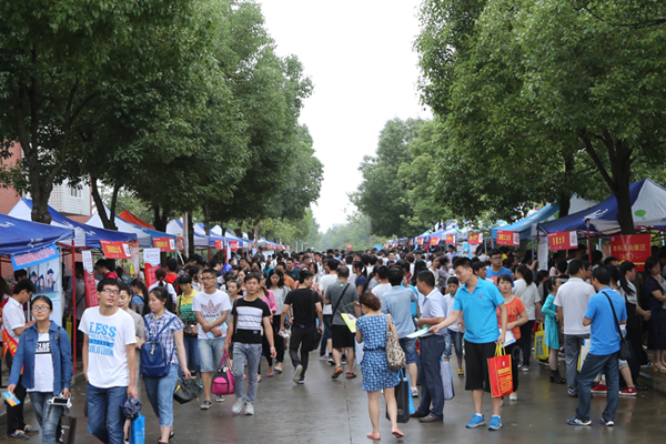 此次高招咨询会受到学生及家长的广泛关注,虽然天空下起了小雨,但这依然抵挡不住考生和家长的咨询热情,仍吸引了3万多人前来咨询报考问题。上午八时,高招会现场人头攒动,不少招生展台前已经排起了长龙,有的家长挨个咨询意向学校的招生计划、分数线,有的考生站在展台旁,仔细倾听,用纸笔记录各学校的情况,不少热门高校展棚里外被围得水泄不通,出现了家长扎堆“取经”的现象。各大高校用展板和传单的形式将自家的亮点和优势展现出来,到场的招生代表耐心回答考生和家长提出的问题,介绍本校的情况以及今年的招生政策,现场气氛十分火爆。