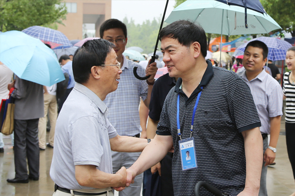 本网讯(通讯员:阚斌斌 张婷婷 学生记者:金典)6月26日上午,由安徽省教育招生考试院主办的安徽省2015年普通高校招生(皖中片)现场咨询会在我校举行,这是我校自2011年起连续承办的第5次高招咨询会。来自全国20个省市的300余所高校的工作人员现场为考生和家长提供咨询服务,解答报考疑惑。安徽省教育厅副厅长李和平冒雨亲临现场指导工作,并看望参展高校代表,与考生和家长进行了深入的交流。安徽省教育招生考试院副院长邸建伟、新华集团董事长吴俊保,集团公司副总裁、我校执行董事王孝武,校领导胡昭林、石秀和、陆真、杨世国、倪征在现场陪同。