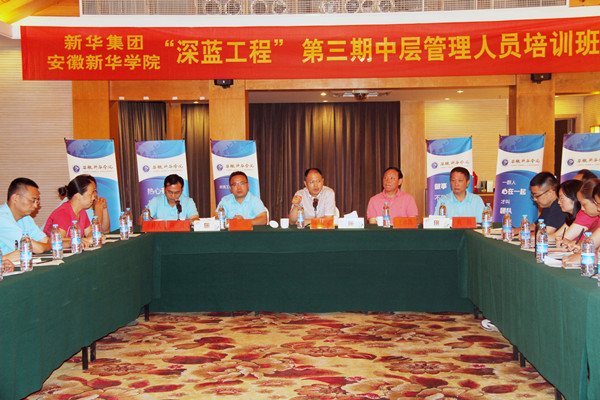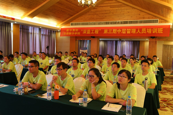 本网讯(通讯员:周景)为加强中层管理队伍建设,塑造良好的工作作风和精神面貌,增强新华文化凝聚力,我校于8月10日至14日举办了“深蓝工程”第三期中层管理人员培训班。本次培训主要包括两场专题讲座和户外拓展训练,集团公司、学校领导及全体青年中层管理人员参加了此次培训。
