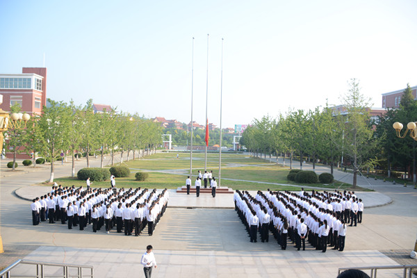 早晨七时许,伴着初秋的阳光,来自各校级组织和学生社团的主要代表在校图书馆北门前的国旗下举行升旗仪式。7:30分,国旗护卫队踏着铿锵的步伐将国旗护送到旗杆下,当国歌奏响,五星红旗升起之时,现场师生神情肃穆,共唱国歌。
