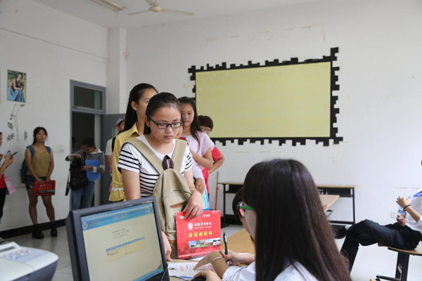“校园很大,环境也特别漂亮,刚刚看到小池塘里还有盛开着的红荷,真好!”动漫学院数字媒体专业的新生王丽兴奋地表达着她对华园的初印象。信息工程学院数字媒体专业的新生欧成静,跟在帮他拖着行李箱的学长后面不住地东张西望,“今天报到多亏了这位热心的学长!他不仅热情还很细心,嘱咐了不少办手续的细节,让我们少走了很多弯路,真的很感谢他们!”欧成静笑着说。