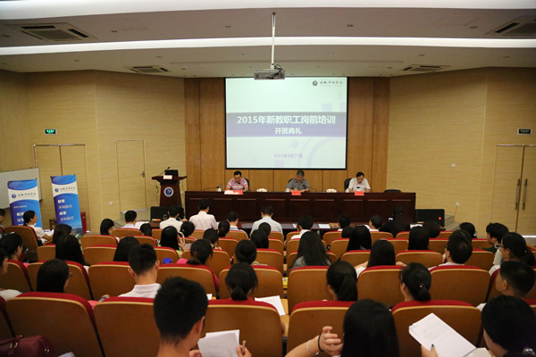27日上午,岗前培训班开班典礼在我校学术报告厅举行,校党委书记、督导专员胡昭林,校长石秀和、常务副校长陆真及相关部门负责人出席了开班典礼,典礼由陆真主持。人事处副处长黄君婕详细汇报了我校2014-2015年度人才引进计划与人事招聘完成情况;公课部王军老师代表新进教职工发言,他号召全体新员工对待工作和生活要保持乐观积极的态度,争做有创新精神的新华人。教务处处长李志远代表老员工发言,他鼓励新进教职工要不断学习,不断进步,做学习型、双能型的高校教师。石秀和对今年的新员工结构特点做了具体分析,教导新教师要对自己的学习和工作做长远的规划,努力做一名优秀的人民教师。最后,胡昭林从管理模式和教学体制两个方面分析了我校发展的优势与机遇,勉励全体新华人为学校创建高水平应用型大学而努力奋斗。