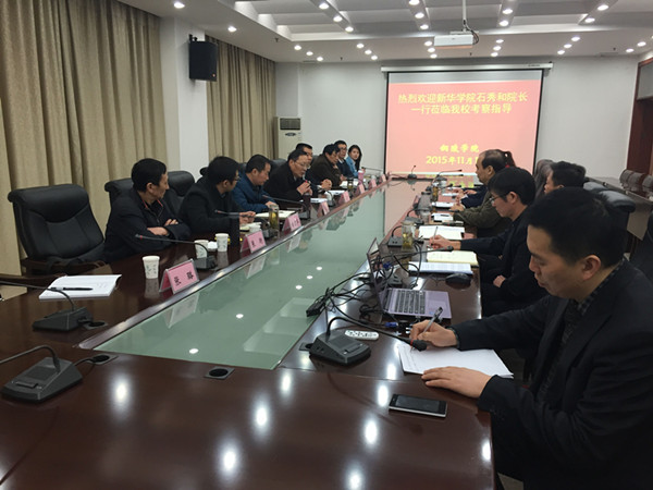 11月11日上午,石秀和一行来到铜陵学院。该校党委书记丁家云,党委副书记、校长倪国爱,副校长冯德连会见安徽新华学院一行,并召开了交流座谈会。该校教务处、发展规划处、科研处、会计学院、工商管理学院、金融学院、经济学院等部门、二级学院负责人参加了座谈会。