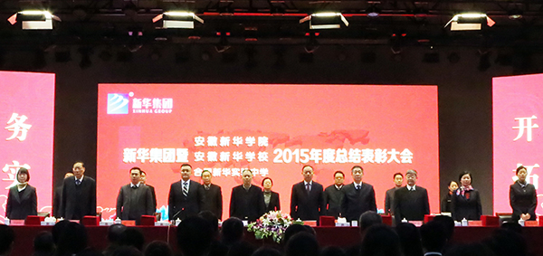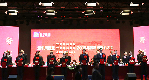 本网讯(王友雅)1月20日上午,新华集团暨安徽新华学院、安徽新华学校、安徽新华实验中学2015年度工作总结表彰大会在我校大礼堂隆重召开。集团、学校领导出席大会,与全体教职员工共同回顾了2015年的工作,并明确了2016年的工作要点与发展方向,同时还对2015年度先进个人进行了表彰。大会由新华集团副总裁、安徽新华学院副董事长王孝武主持。