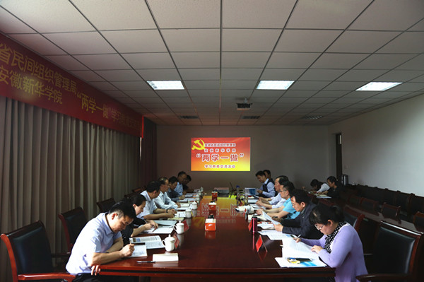 本网讯(通讯员:汪明天,摄影:金政)5月24日,安徽省民间组织管理局来我校开展“两学一做”学习教育交流活动,我校党委委员参与学习交流。学习教育交流会由省督导专员、校党委书记储国定主持。