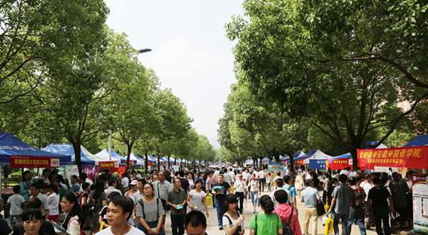 上午7时左右,已有很多考生和家长赶到现场,校园内精心布置的彩色帐篷和招生展台前,各大高校招生工作人员充分做好了展示自家的亮点和优势的准备工作。