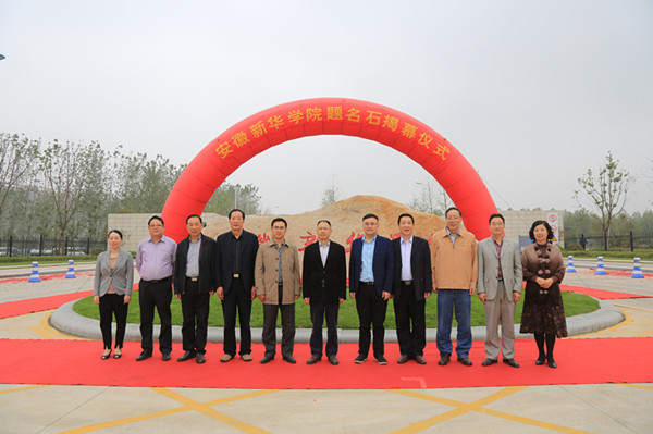 10时18分,在新华集团董事长吴俊保的带领下,集团领导与校领导共同为题名石揭幕,红灿灿的“安徽新华学院”六个大字镌刻在庄严厚重的景观石上,在阳光下熠熠生辉。