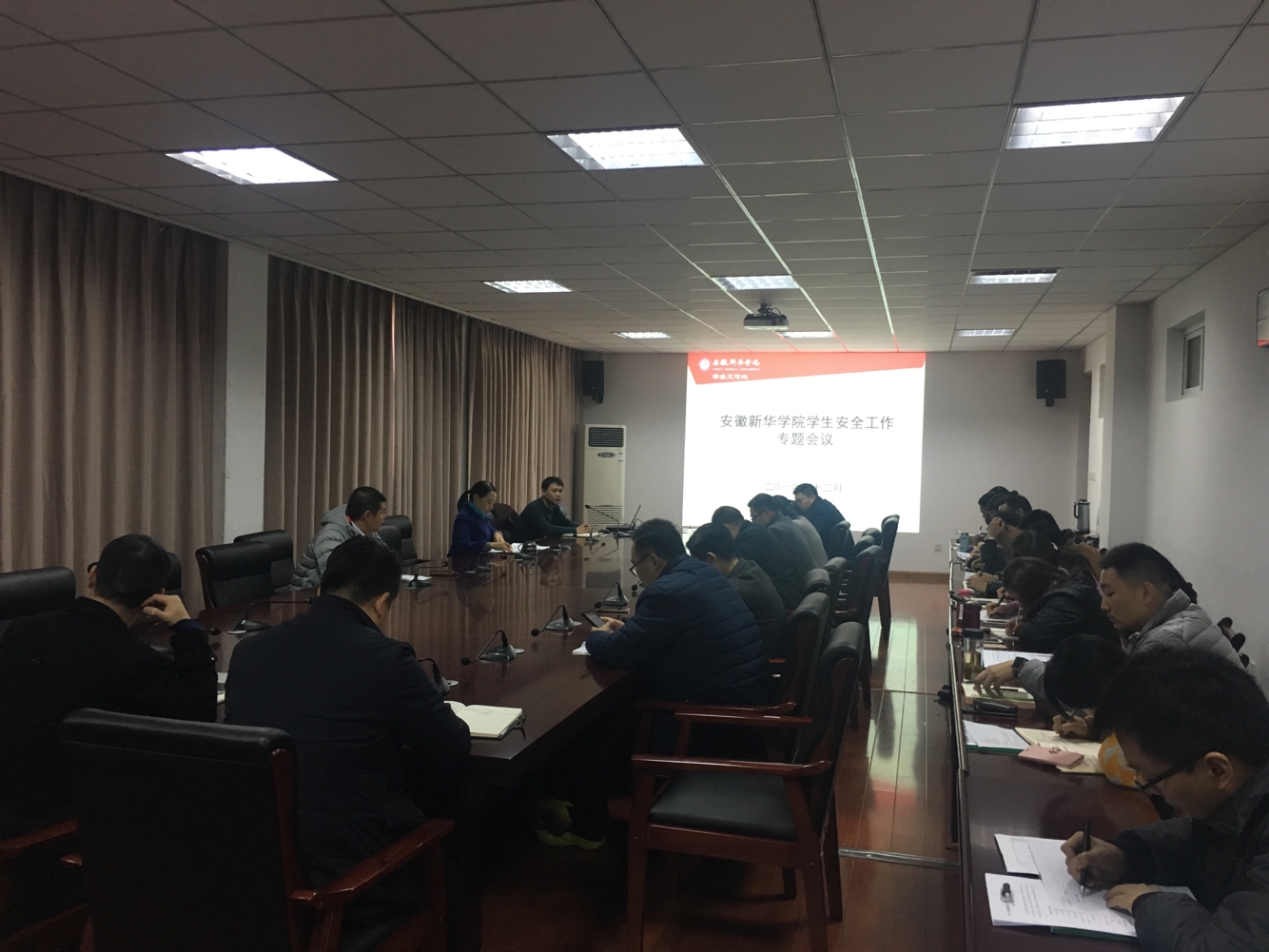 本网讯(通讯员:龚欣)为维护校园安全稳定,做好期末学生安全教育,引导学生树立科学的消费观,12月12日下午,我校召开安全工作会议。副校长王丽出席会议并作指导讲话。学生处、教务处、保卫处、总务处、环境建设处相关负责人、各二级学院执行院长、副院长参加了会议。本次会议由学生处副处长汪俊东主持。