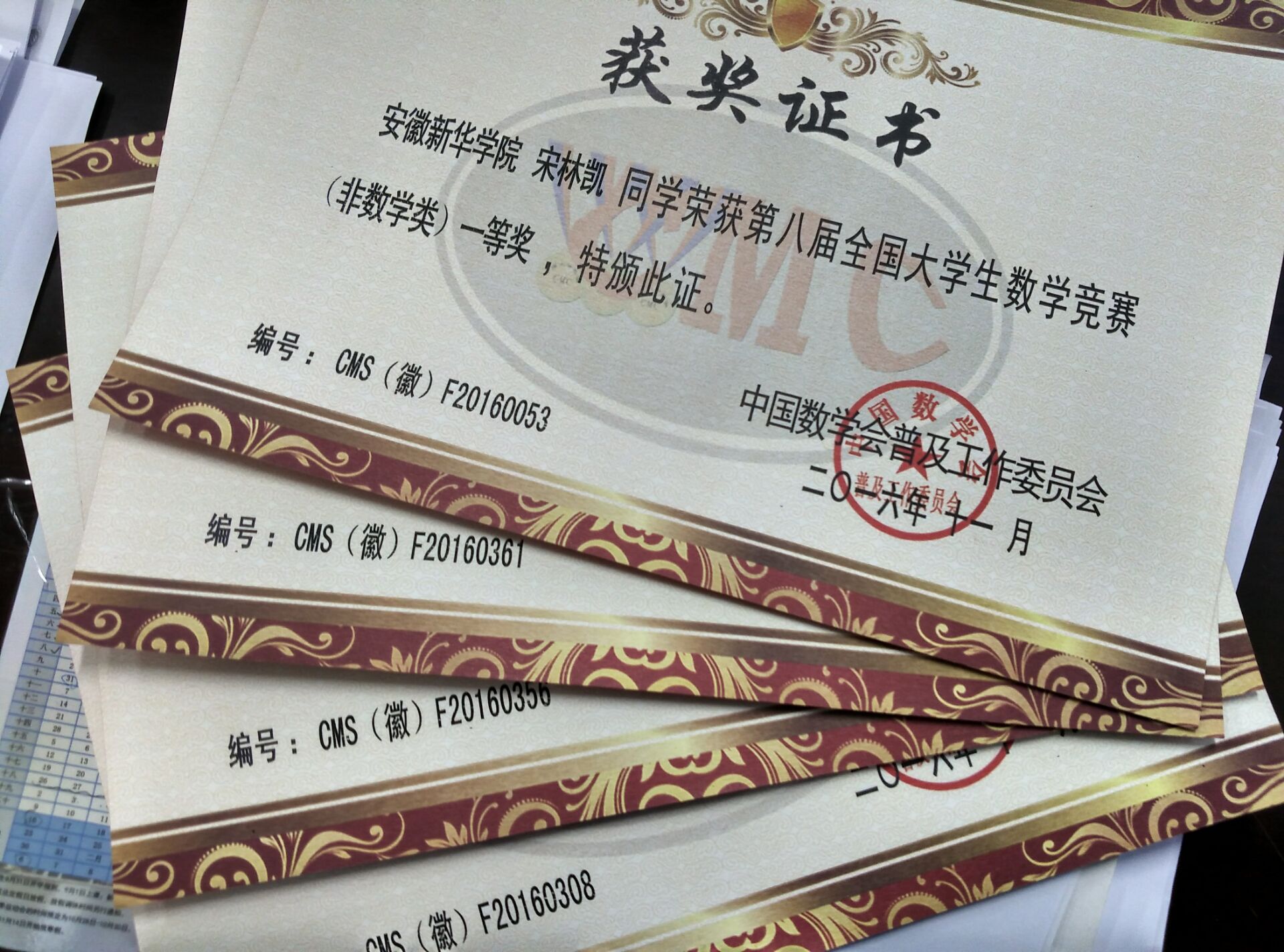 本网讯(通讯员:聂东明)第八届全国大学生数学竞赛安徽赛区成绩近日揭晓,我校共四名学生获奖,其中宋林凯获得学院组一等奖,徐林果、李海东、刘闯获得学院组三等奖。