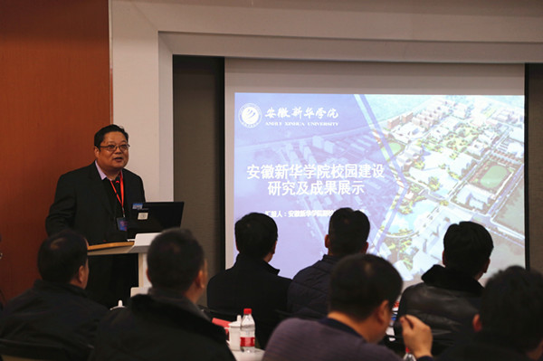 上午,李金星作“安徽新华学院校园建设研究及成果展示”主题报告,向与会代表介绍了我校基建工作的相关情况。