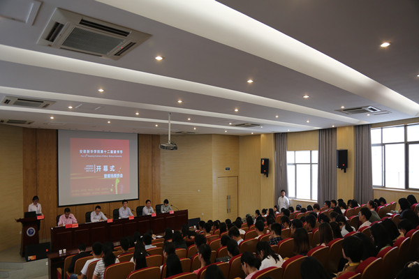 本届读书节以“以书为伴,阅享悦读”为主题,由图书馆、教务处、校团委、文化与新闻传播学院共同主办,校务助理团、0梦读书社、青年学术社协办。开幕式上,汤干君为本届读书节开幕式致辞。在致辞中他介绍了我校第十二届读书节活动举办的背景以及意义,提到了当今我国青少年对于阅读的懈怠,以及习近平总书记对青年学生和教师作为中华民族“梦之队”生力军的殷切希望,从而引导广大师生读者要多读书、读好书,与书为伴,共享读书的快乐。柯姗姗介绍了本届读书节的活动内容,本届读书节结合了“新华阅读工程”和安徽省读书创作活动,内容丰富而多彩。随后,学生代表在开幕式上发表了读书倡议。