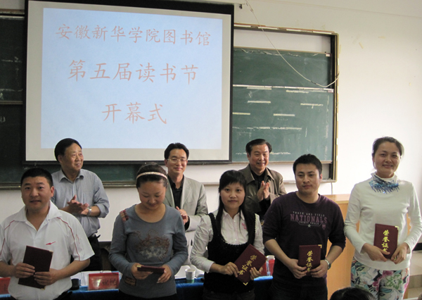 随后,费业昆宣读了《关于表彰安徽新华学院优秀读者的决定》,本着公正公平的原则,评选出5名优秀教师读者组和10名优秀学生读者,给予优秀读者每人一份奖品和增加2本藏书借阅权限的奖励,马凤余副院长、宁业高教授、费业昆馆长为优秀读者颁发了“优秀读者荣誉证书”。