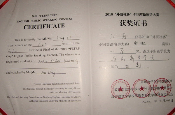 对于此次高水平赛事,我院领导给予了高度的重视,经过层层选拔,最终确定了江莉和丁蕾两位同学代表我院参赛,由胡亮老师指导。经过精心,严格的训练,从演讲稿,演讲技巧等环节进行了充分的准备。此外,外籍教师Michal在赛前对学生进行了专项模拟演练。大家的心血最终换来了今天辉煌的成绩,既是对我院近年来人才培养模式改革的肯定,也为我院赢得了历史性的突破,扩大了我院在全省的影响力和知名度。