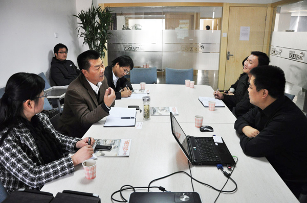 在万家热线会议室,双方进行了友好地交流。万家热线总编辑刘炜先生首先介绍了网站的基本情况,同时代表万家热线高度赞扬了与我院长期以来的密切合作,并对我院长期向万家热线输送高素质的人才表示感谢,最后就进一步加强合作的模式提出了将实习活动纳入到课程设置中去,在特色学科建设过程中应区别于传统媒体,基于网络媒体未来发展的前景,人才培养方案中应更多的偏向与网络媒体相关的课程建设和加强校企人才交流合作,经常性的互派专家进行技术交流等建议。