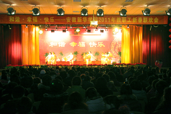 1月21日下午,一场以“幸福 和谐 快乐”为主题的安徽新华学院2011年教职工新春联欢会在学院大礼堂隆重上演。集团公司领导、学院领导、老教授及全体教职员工共同参加了本次联欢会,联欢会在一片欢声笑语中进行。
