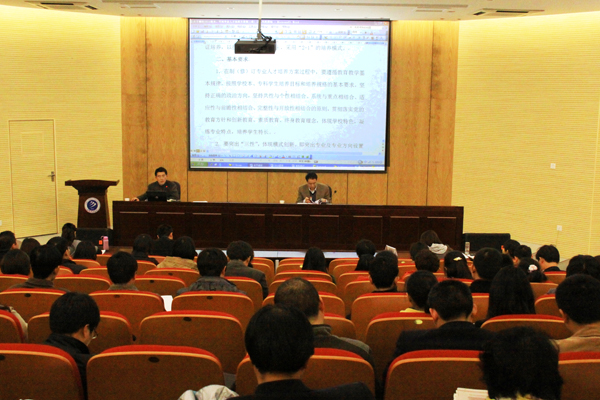 会上,方纯洁首先简要的介绍了本次应用型人才培养方案制修订工作的背景、总体思路、时间推进及工作要求。他说,从去年十一月份,学院开展了一系列的应用型人才培养模式改革创新大讨论和人才培养方案专项调研论证工作,有针对性的搜集、整理了部分应用型高校人才培养方案修订资料和有关理论研究文章,组织认真学习了有关文件,多次召开专门会议,认真分析研究了我院人才培养工作的现状,结合我院发展趋势,形成了最终的指导性意见。接着,他从指导思想、基本原则、学时学分控制、课程体系模块、实践教学体系结构、学分计算方法、基本内容和格式、辅修制和双专业教学计划等八个方面详细分析了本次人才培养方案与2010级培养方案的不同之处,并对修订培养方案时需要掌握的技术策略、需要注意的细节、内容等进行了细致的阐述。