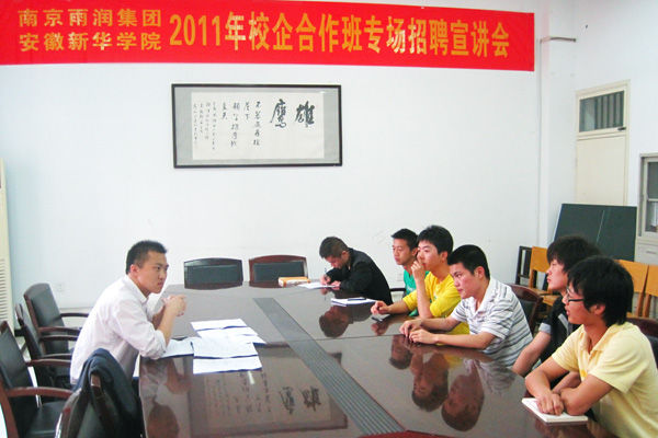 5月12日下午,南京雨润食品有限公司校企合作定向就业班“雨润班”安徽新华学院校园专场招聘会隆重举行。学院150多名2012届毕业生在学院学术报告厅参加了本次雨润集团招聘宣讲会。宣讲会上,雨润集团人力资源部相关负责同志首先播放了该集团的企业宣传片,接着就公司的招聘岗位和校企合作培养模式等进行了详细的介绍。宣讲会结束后,雨润集团工作人员在招就办会议室进行了面试。学院招生就业办公室会在近期及时在学院就业信息网上公布面试通过学生名单,面试合格的学生将进入南京雨润集团进行一年的见习锻炼,接受系统化、职业化的培养,以提升学生的技术水平和综合能力,确保达到企业用人需求。